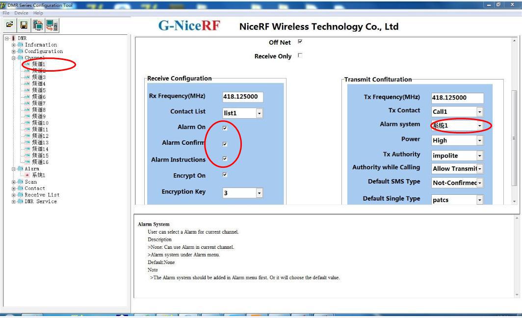 El cuarto paso: en la configuración del canal que se ha seleccionado, verifique la opción de altavoz del walkie-talkie y seleccione Sistema de alarma.