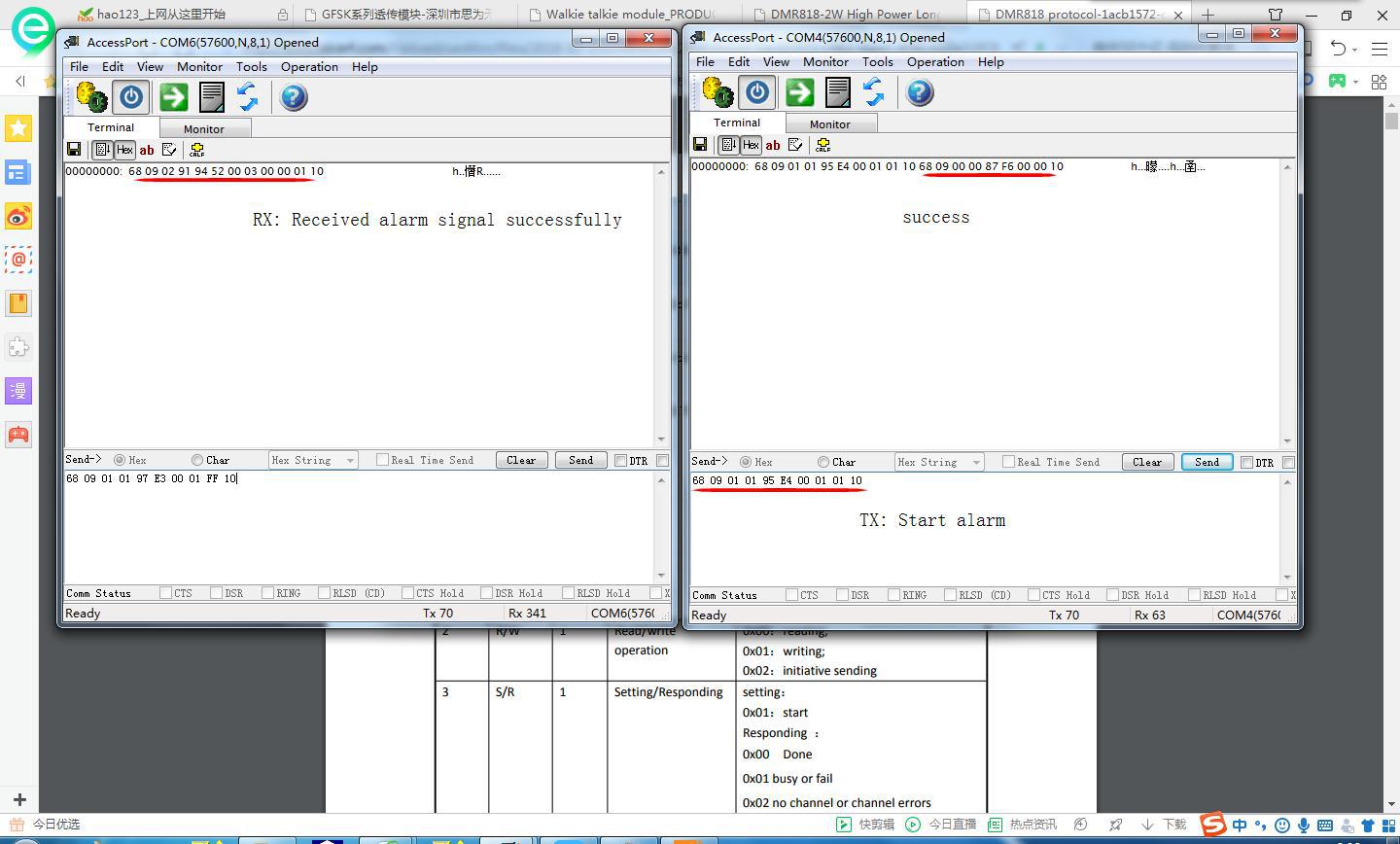 El sexto paso, a través del comando del puerto serie, finaliza el estado de alarma del walkie-talkie.