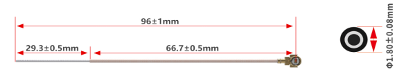 Dimensiones mecánicas de la antena IPEX SW2400-IPEX01
