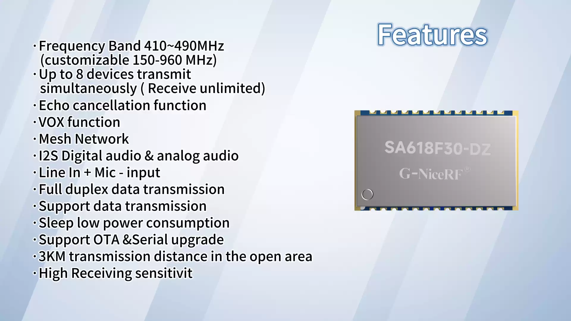 SA618F30-DZ: Módulo de audio full-duplex con relé multinivel de 1 W y 8 antenas duales, frecuencia de muestreo de 8K y protección ESD